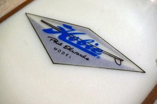 Hobie surfboards、Phil Edwardsモデル。非常に珍しい、本人カスタムシェイプになります。センター2インチバルサと5ストリンガーのカスタムブランクス、テールWOODブロックとウッドのグラスオンフィンがセットされたリアル・クラシカルなこだわりの1本です。